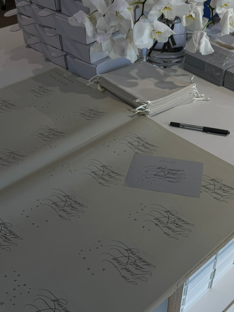 With the hand script phrase determined, the free hand stars surrounding were appointed to capture a sense of holiday magic. Inspired by astrology and aspirations, the inclusion of stars resonated with past holidays and a sense of magic at all ages, feeling that anything is possible and contentment all at once.