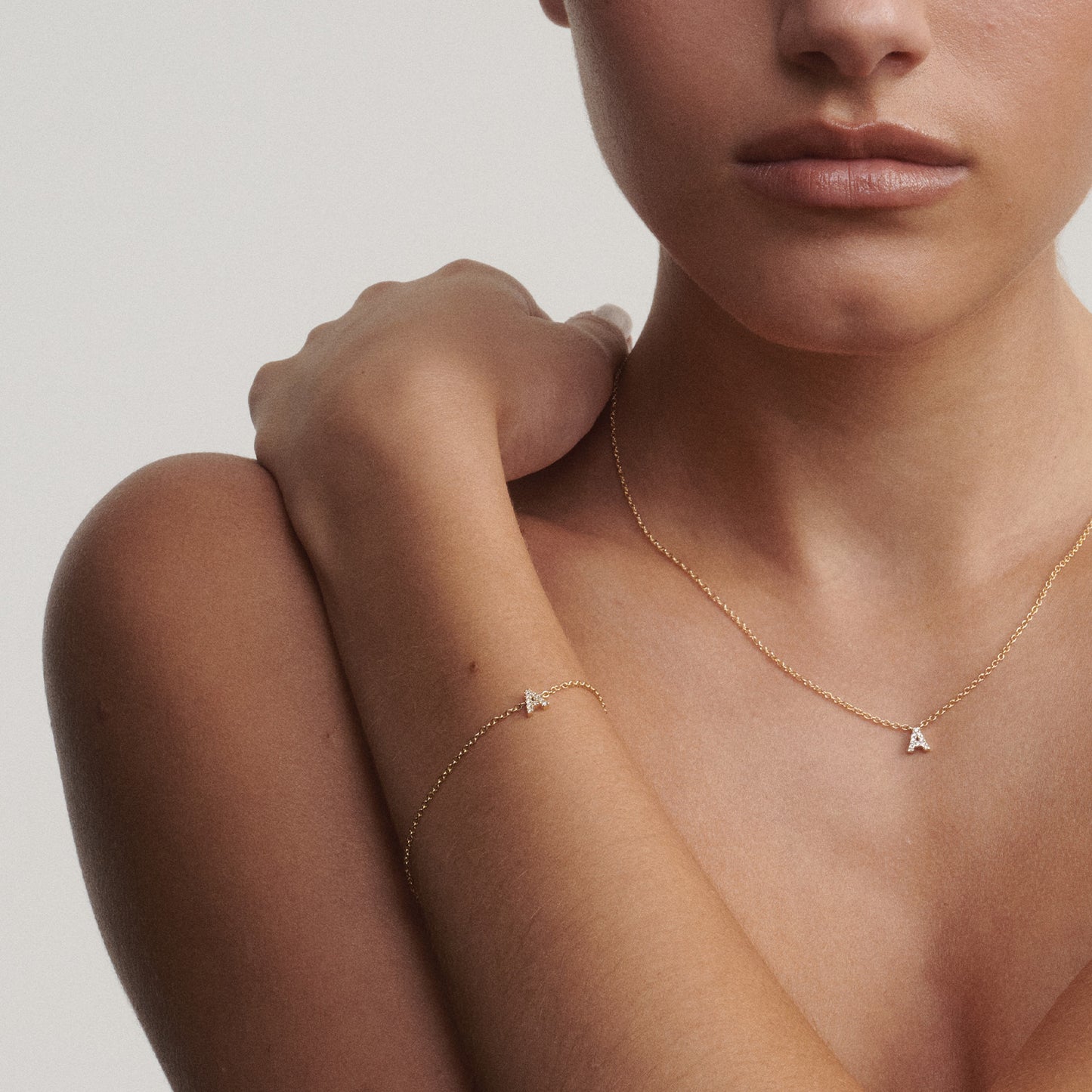 Diamond Letter Bracelet | Fixed Charm with Lab-Grown Diamonds