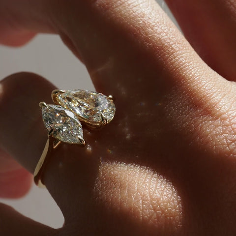 An exquisite Pear & Marquise lab-grown diamond Toi et Moi style — ready to wear