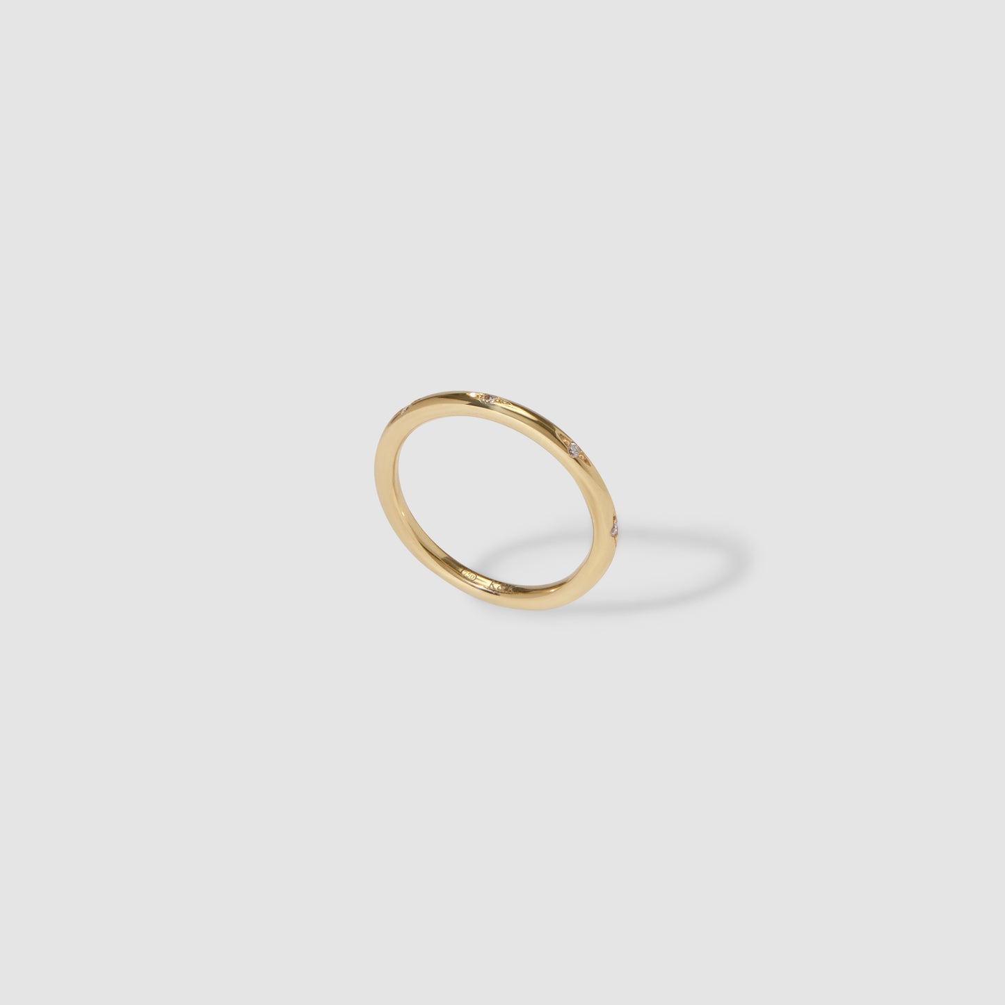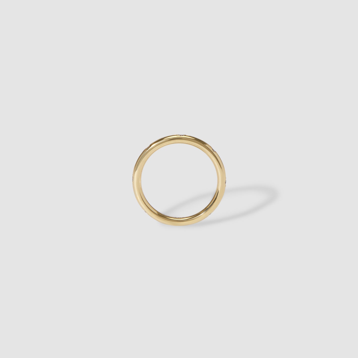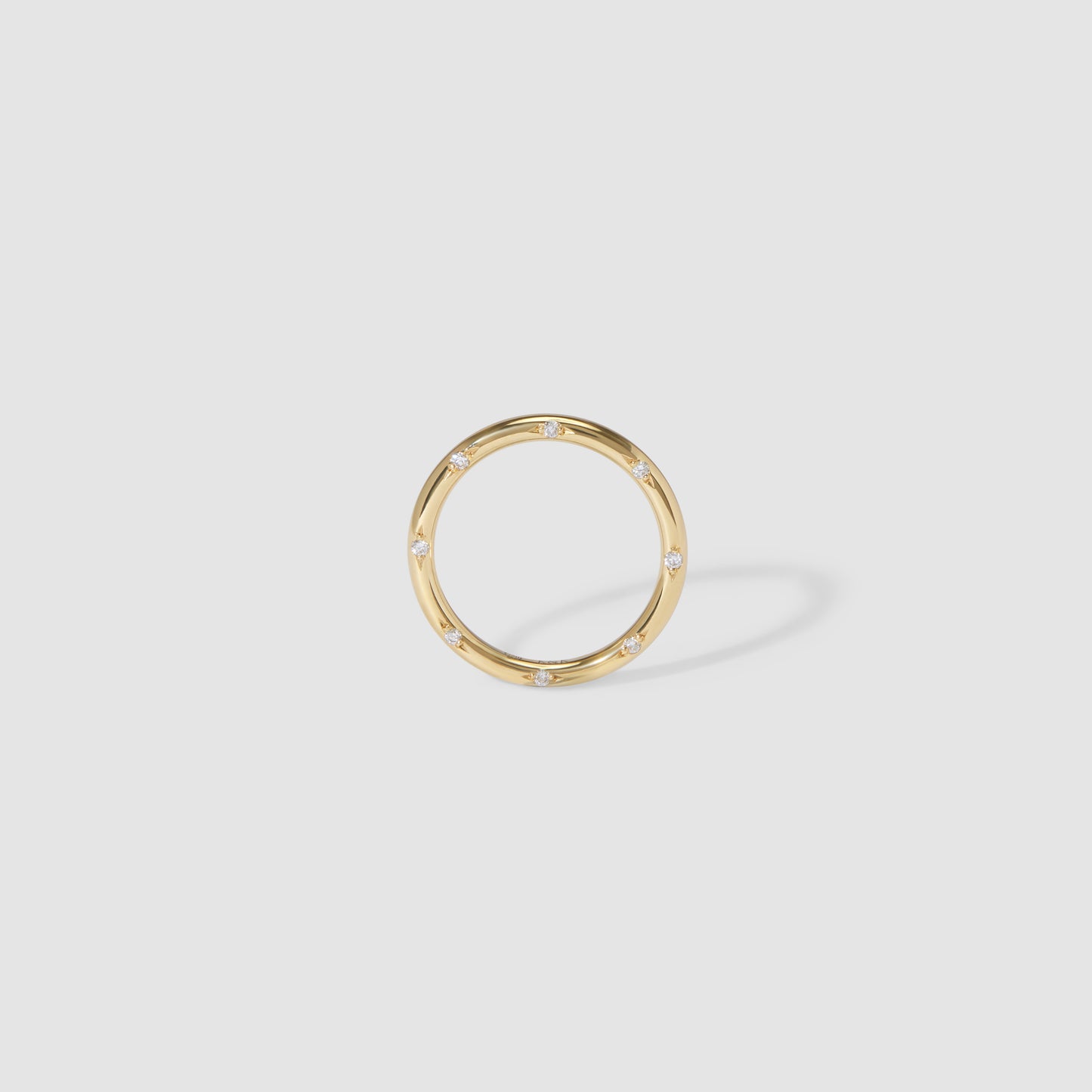 A solid gold round profile band for the modern minimalist — set with eight ornately set lab-grown diamonds spaced along the top or side edge