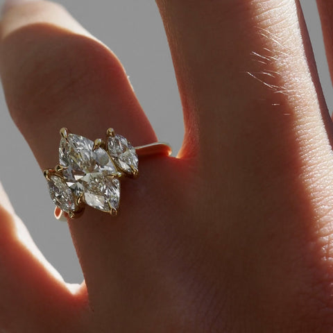 Maya features a trio of perfectly proportioned marquise cut lab-grown diamonds, with a 2.05ct centre stone.