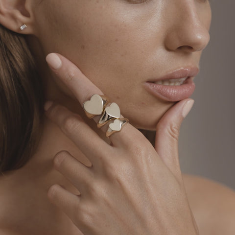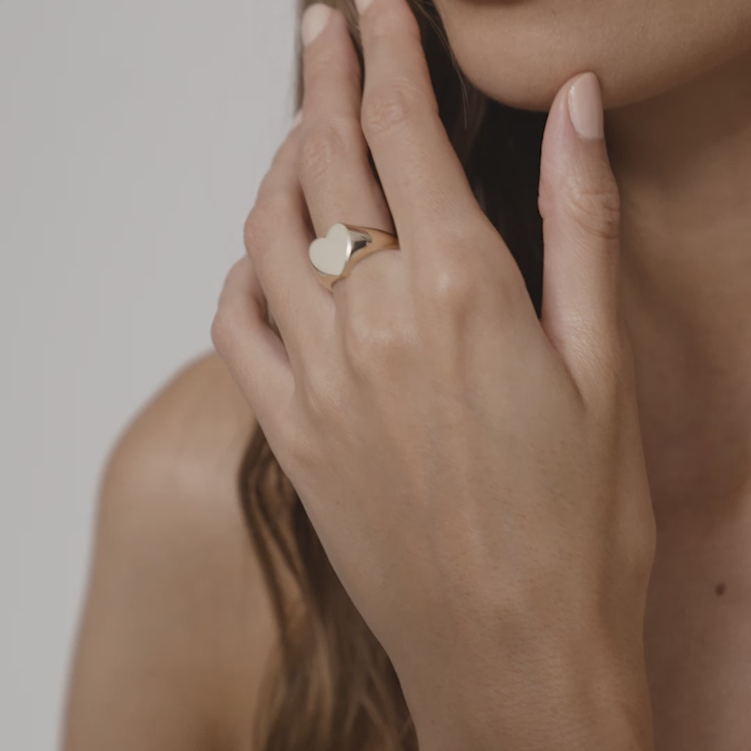 A bold yet feminine take on a traditional signet, the Medium Heart Signet offers a generous canvas for personalisation. Whether engraved with a meaningful design or hand-set lab-grown diamond or birthstones, this piece is made to be treasured.