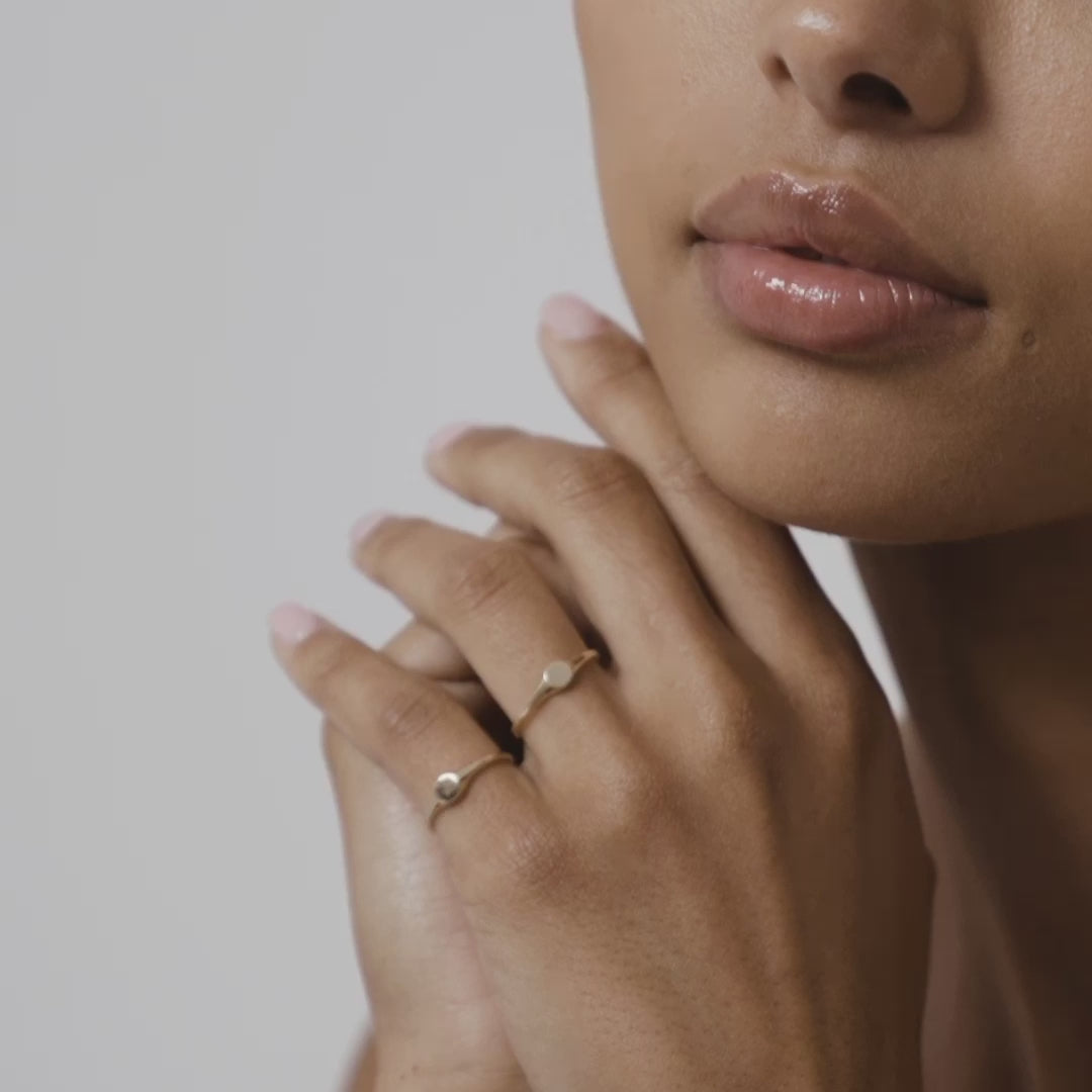 Petite yet meaningful, the Mini Round Signet is a refined take on a classic. Its sleek, circular design makes it perfect for custom engraving or setting with a sentimental stone. Handcrafted to order, this ring is a subtle yet personal everyday piece.