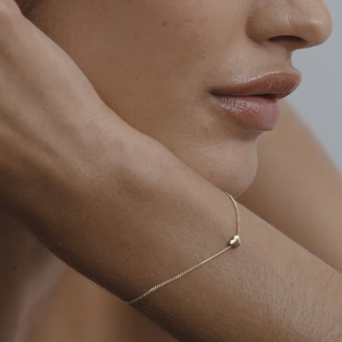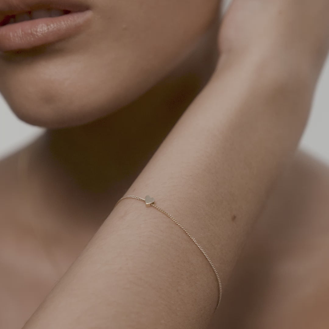 This sweet tiny heart bracelet features a solid gold or silver hand-finished tiny heart, strung onto a delicate chain. The perfect charm bracelet for a sentimental gift or sweet personal treat. Please note these charms do slide along the chain and are not fixed in place.